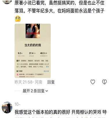 《太奶奶》批驳区充满了不雅众对母亲的想念之情,而该剧的胜利也离不开真情实感的败露。